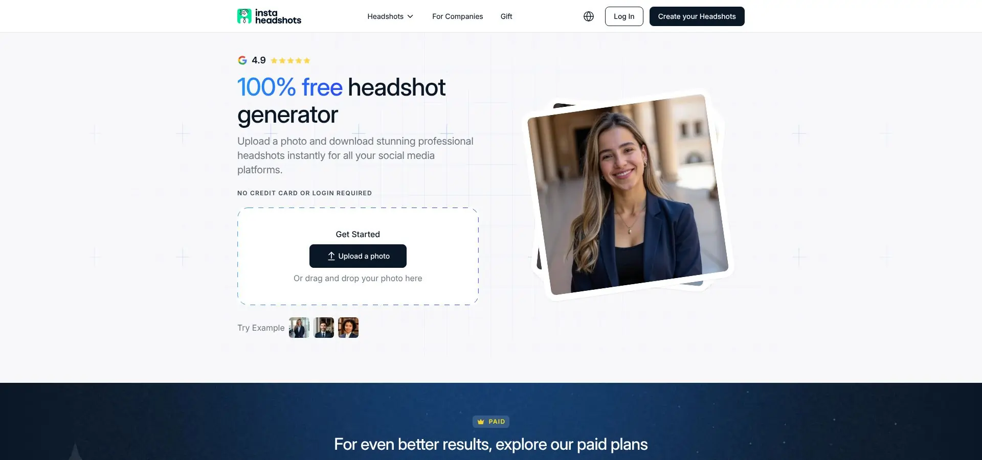 You never hand over a credit card, never create an account, and never download a file stamped with a logo. The site states “100 percent free headshot generator, no signup required,” and it delivers.