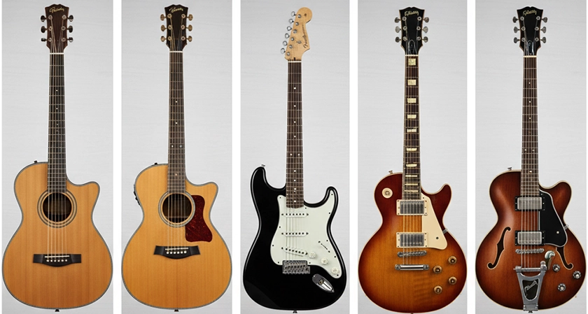 Think about your influences first. Rock and metal pull you toward solid-body electrics. Folk and acoustic singer-songwriter work points clearly toward a dreadnought or concert-shaped guitar. Jazz leans hollow or semi-hollow. The music you want to make should lead the decision.